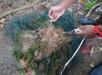 Andy took photos of the nets and shared these photos. There were about 5 pile of nets, each about 60cm x 50cm x 25cm in volume. A total of about 3.75 cubic metres of net!